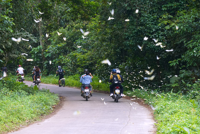 20km motorbiking inside Cuc Phuong National park is asphalted but the path is very narrow 0.8-1m wide. Don’t boost up your speed over 30km/hour to avoid the car or even minibus appearing suddenly from the reverse direction. Before you trek inside the park, leave the bikes in front of Pre-historic Men’s cave. There are 1-2 park staff taking care of them. You have to pay them only 10.000 VND (50 US cents)/ 1 motorbike.